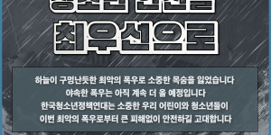 안녕하세요. 한국청소년정책연대입니다.하늘이 구멍난듯한 115년만의 최악의 폭우로 소중한 목숨을 잃고 실종자도 늘고 있습니다.야속한 폭우는 아직 계속 더 ...