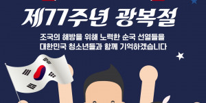 안녕하세요. 한국청소년정책연대입니다.8월 15일은 조국이 일제로부터 해방된지 77주년을 맞는 광복절입니다.한국청소년정책연대는 조국의 해방을 위해 노력하다...