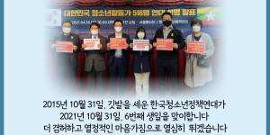 안녕하세요. 한국청소년정책연대입니다.2015년 10월 31일 깃발을 세운 한국청소년정책연대가 2021년 10월 31일, 6번째 생일을 맞이합니다.그동안 ...