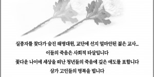 실종자를 찾다가 숨진 해병대원, 교단에 선지 얼마안된 젊은 교사...이들의 죽음은 사회적 타살입니다.꽃다운 나이에 세상을 떠난 청년들의 죽음에 깊은 애...