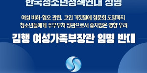 김행 여성가족부장관 임명 반대 한국청소년정책연대 성명
