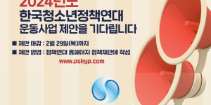 안녕하세요. 한국청소년정책연대입니다. 2024년도 청소년의 권리와 인권을 위한 한국청소년정책연대의 주요 운동사업 추진 제안을 기다립니다. ...