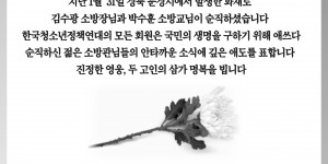 한국청소년정책연대입니다. 지난 1월 31일 경북 문경시에서 발생한 화재로 김수광 소방장님과 박수훈 소방교님이 순직하셨습니다. 한국청소년정책연대...