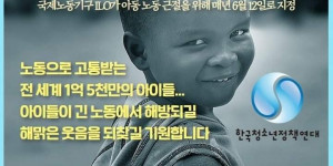 세계 아동 노동 반대의 날 안내 (2021. 6. 12) 6월 12일은 국제노동기구 ILO가 전 세계 1억 수천만명에 달하는 아이들이 교육ㆍ건강ㆍ여가 ...