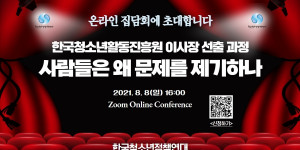 한국청소년활동진흥원 이사장 선출 과정 온라인 집담회 (2021. 7. 27) 안녕하세요. 한국청소년정책연대입니다.한국청소년정책연대는 최근 논란이 일고...
