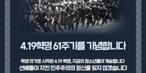 4.19 혁명 61주년 기념 안내 (2021. 4. 19) 오늘은 4.19 혁명 61주년이 되는 날입니다.학생 의거로 시작된 4.19 혁명, 지금의 청...