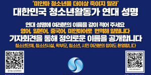 ‘미얀마 청소년들을 죽이지 말라, 대한민국 청소년지도자 연대 성명’ 기자회견 안내 (2021.3 . 28) 안녕하세요. 한국청소년정책연대입니다.지난...